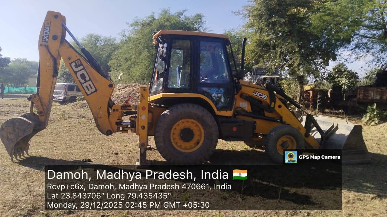 DAMOH ग्राम बॉसा तारखेडा मे मिट्टी का अवैध उत्खनन करते हुए एक जेसीबी जप्त