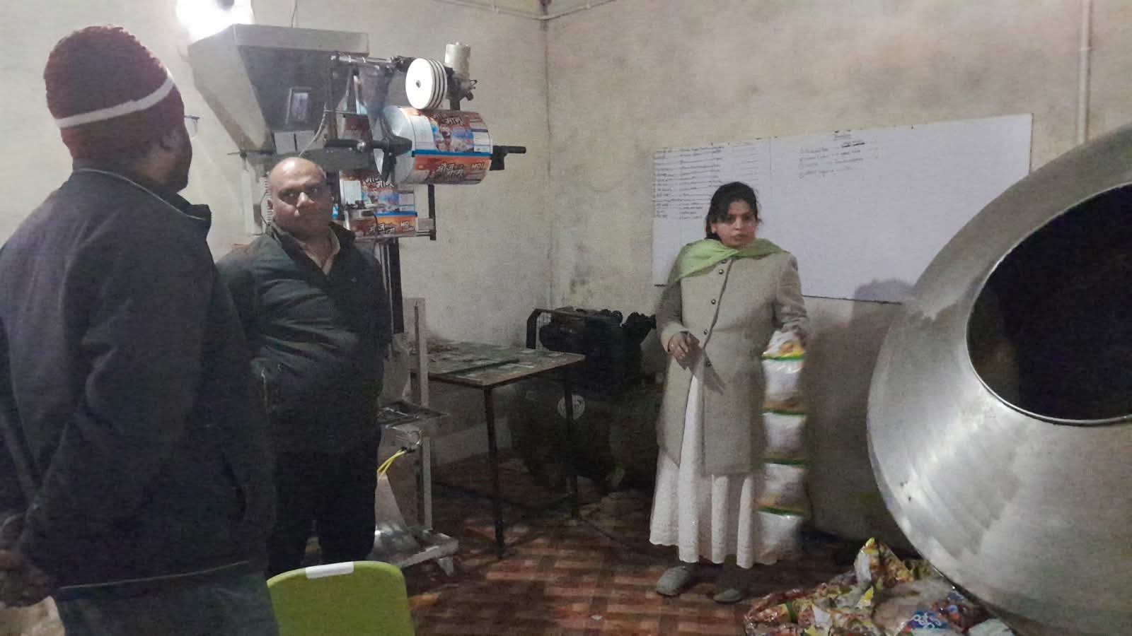 निरीक्षण के दौरान परिसर से मौके पर विक्रय हेतु संग्रहित सीक्रेट सेंटा एवं दाल चावल ब्रांड स्नैक्स के नमूनें जांच हेतु लिए गए। मौके पर निर्माण यूनिट में कार्यरत कर्मचारियों के एनुअल मेडिकल सर्टिफिकेट नहीं पाए गए। कर्मचारियों द्वारा एप्रन एवं हेड कवर का उपयोग करते हुए नहीं पाया गया।लैब टेस्टिंग रिपोर्ट, फोस्टैक ट्रेनिंग सर्टिफिकेट, पेस्ट कंट्रोल सर्टिफिकेट एवं पैकेजिंग मटेरियल लैब टेस्टिंग रिपोर्ट नहीं पाए गए। मौके पर परिसर में विभिन्न प्रकार की अनियमितताएं पाए जाने पर धारा 32 के तहत नोटिस जारी किया गया। इन नमूनों को जांच हेतु राज्य खाद्य परीक्षण प्रयोगशाला भेजा गया। जांच रिपोर्ट प्राप्त होने पर वैधानिक कार्यवाही की जाएगी।