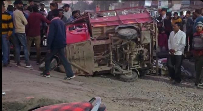 स्थानीय लोगों ने तत्परता दिखाते हुए पलटे हुए वाहन को सीधा किया, जिससे आवागमन पुनः शुरू हो सका। हादसे में सड़क पर खड़ी दो बाइक बुरी तरह क्षतिग्रस्त हो गईं, जबकि पास से गुजर रही स्कूटी सवार बालिका सुरक्षित रही।