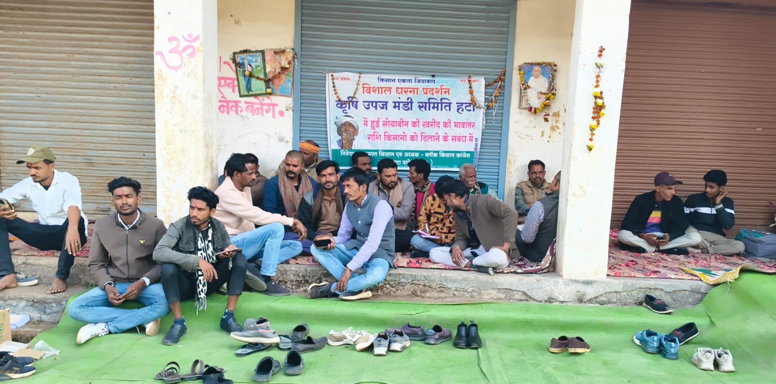 हटा। किसानों के बकाया भुगतान को लेकर हटा कृषि मंडी में अनिश्चितकालीन धरना चौथे दिन भी जारी*