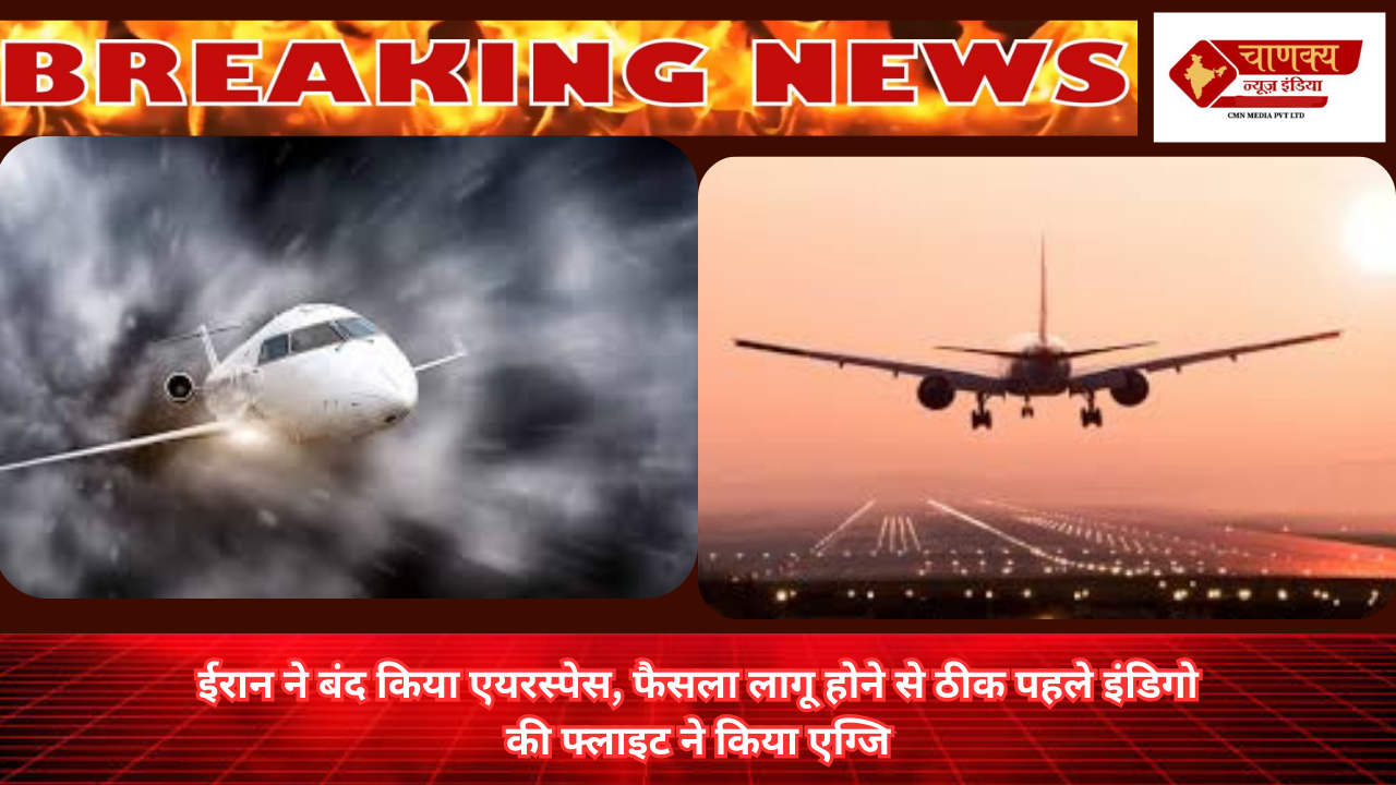ईरान ने अपने हवाई क्षेत्र (एयरस्पेस) को अस्थायी रूप से बंद करने का फैसला लिया, और यह निर्णय लागू होने से ठीक पहले इंडिगो की एक अंतरराष्ट्रीय उड़ान ने ईरानी एयरस्पेस से बाहर निकलकर सुरक्षित मार्ग अपना लिया।