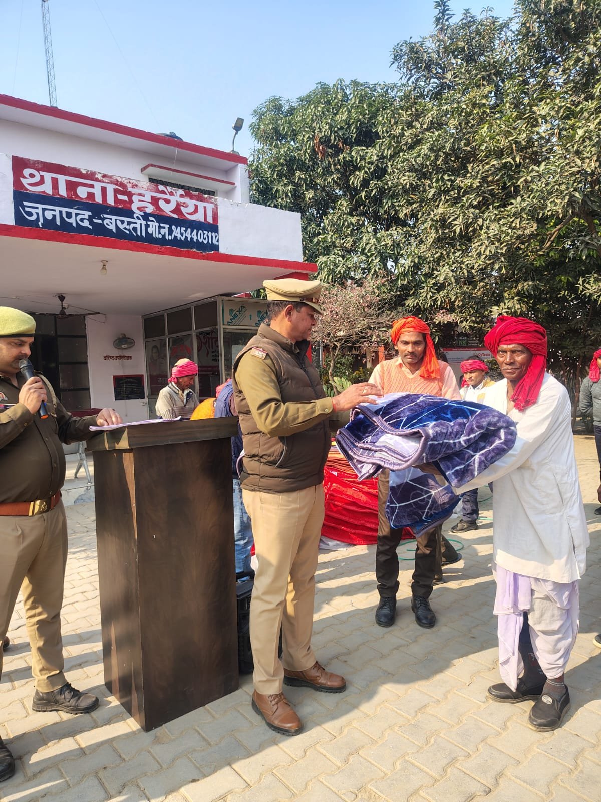 बस्ती: पुलिस अधीक्षक बस्ती अभिनंदन व अपर पुलिस अधीक्षक श्यामकांत के कुशल निर्देशन में , क्षेत्राधिकारी सर्किल हर्रैया स्वर्णिमा सिंह के कुशल पर्यवेक्षण में प्रभारी निरीक्षक तहसीलदार सिंह के कुशल नेतृत्व में आज 18 जनवरी को ग्राम प्रहरी ( चौकीदार ) को थाना परिसर मे कंबल वितरण किया गया तथा उच्चाधिकारीगण से प्राप्त आदेशो निर्देशो से अबगत कराया गया ।