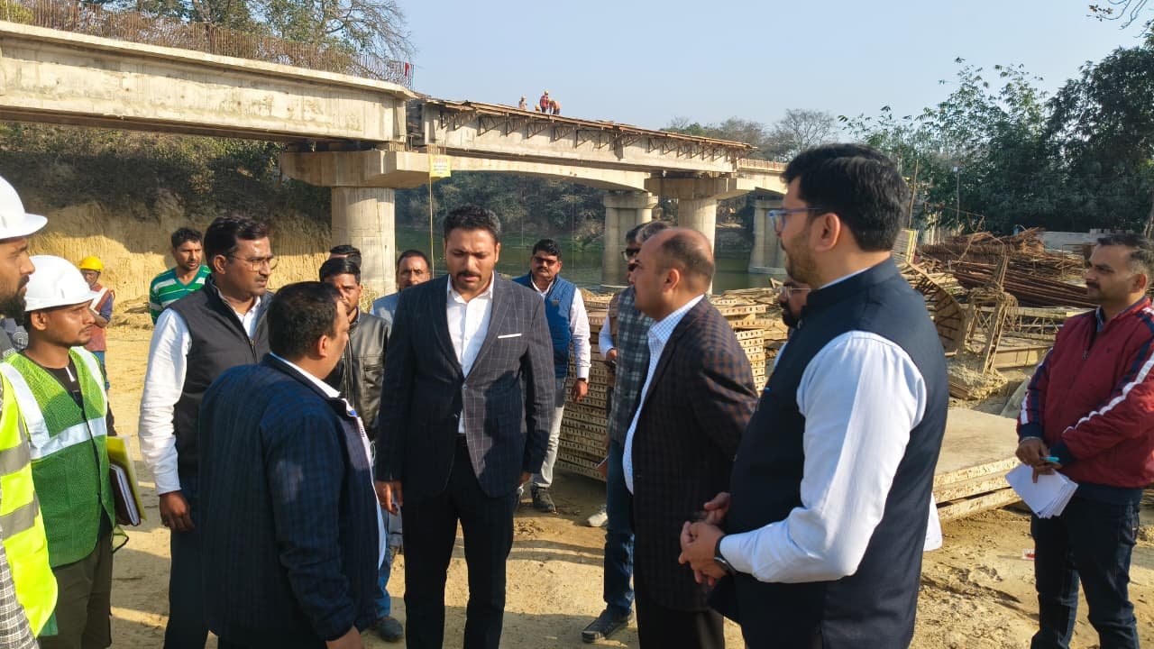 सुलतानपुर 07 फरवरी/जिलाधिकारी कुमार हर्ष व मुख्य विकास अधिकारी विनय कुमार सिंह द्वारा राज्य योजनान्तर्गत अकबरपुर-कादीपुर-चाँदा पट्टी- देल्हूपुर मार्ग (राज्य मार्ग सं0 128) में स्थित गोमती नदी पर निर्माणाधीन देवार घाट सेतु पहँुच मार्ग एवं सुरक्षात्मक निर्माण कार्य का निरीक्षण कर प्रयुक्त निर्माण सामग्री की गुणवत्ता का जायजा लिया गया। उक्त देवार घाट सेतु का निर्माण कार्यदायी संस्था उ0प्र0 राज्य सेतु निगम लि0 द्वारा कराया जा रहा है। पहुँच मार्ग की लम्बाई-400 मी0 है, कुल स्वीकृत लागत रू0 2886.60 लाख है तथा कार्य प्रारम्भ की तिथि मार्च, 2024 है तथा कार्य पूर्ण करने की तिथि मार्च, 2027 है।