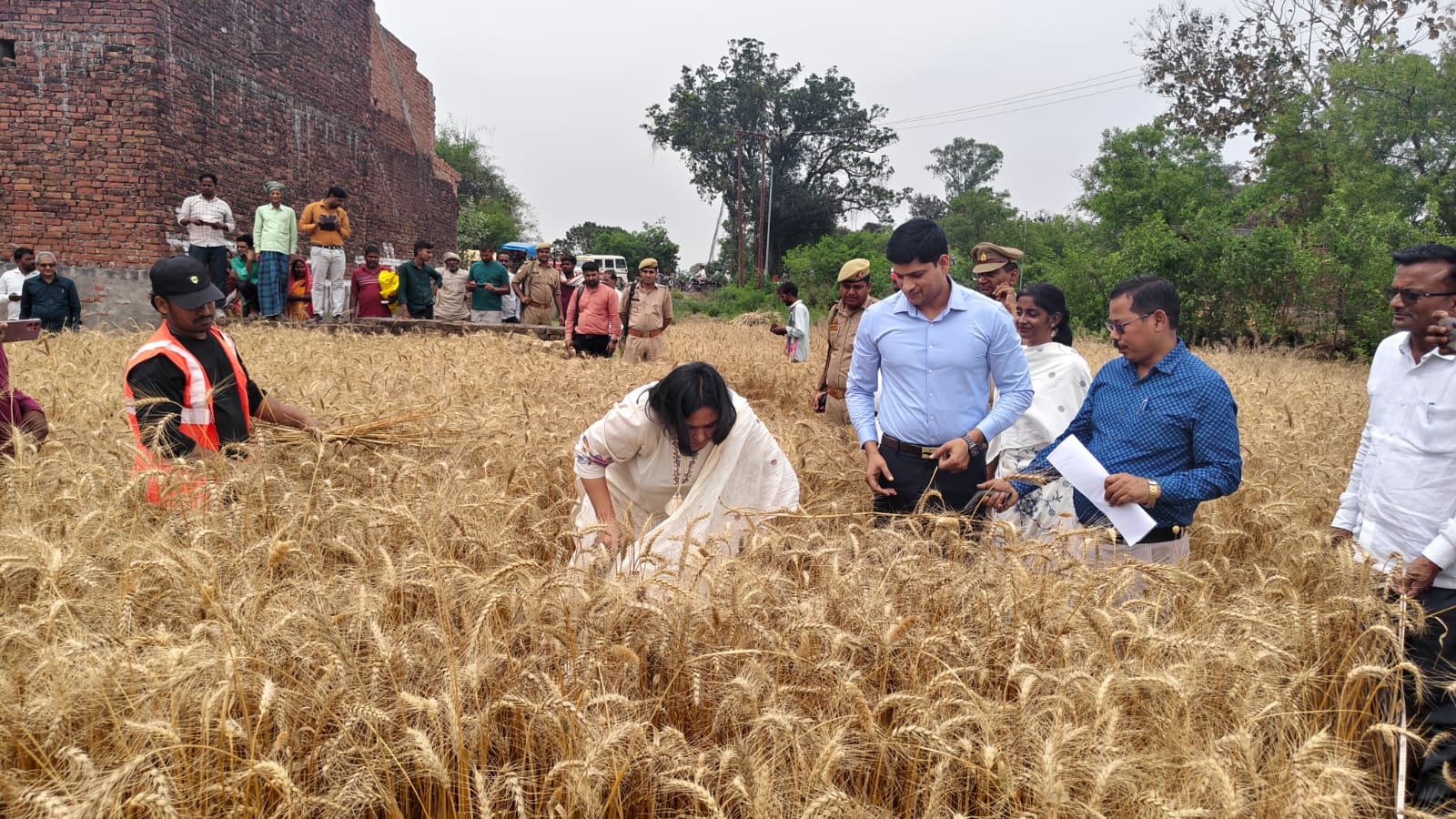 बस्ती। प्रधानमंत्री फसल बीमा योजना के अन्तर्गत चल रहे क्राप कटिंग प्रयोग जनपद में कराया जा रहा है, जिसमं जनपद स्तरीय एवं तहसील स्तरीय अधिकारियों द्वारा निरीक्षण किया जाता है, इसी क्रम में जिलाधिकारी कृत्तिका ज्योत्स्ना एवं पुलिस अधीक्षक डा यशवीर सिंह ने संयुक्त रूप से ग्राम फेरसम विकास खण्ड-सल्टौआ, तहसील-भानपुर के गाटा संख्या 12/0.126 हे0 में 10 मी० समबाहु त्रिभुज (43.33वर्ग मी0) की कटाई कर फसल का निरीक्षण किया गया, जिसमें गेहूं 18.9 किग्रा निकला, जिसके अनुसार प्रति हेक्टेयर उत्पादन लगभग 43.5 कुंतल प्रति हे० हुआ। निरीक्षण के दौरान फसल उपज औसतन है। इस अवसर पर भू-स्वामी बादुल्लाह पिता का नाम अब्दुल, अपर सांख्यिकीय अधिकारी-अजय कुमार चौधरी, नायब तहसीलदार-पूजा वर्मा, राजस्व निरीक्षक सुभाष चौबे, लेखपाल शिव कुमार राम, वीरेन्द्र चौधरी, संतोष कुमार एंव ग्रामवासी उपस्थित रहे।