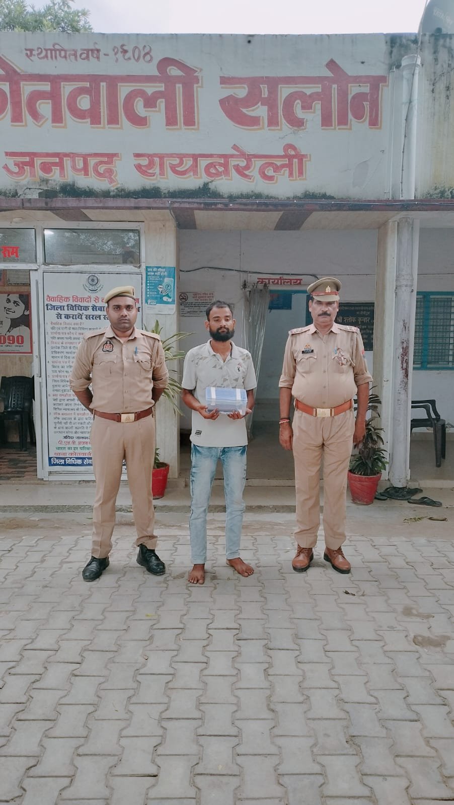अपराध एवं अपराधियों के विरुद्ध कृत कार्यवाही के अन्तर्गत दिनांक 26 सितम्बर 2024 को थाना सलोन पुलिस टीम द्वारा संदिग्ध व्यक्ति/वाहन के चेकिंग के दौरान अभियुक्त रुद्र प्रताप सिंह पुत्र सुरेश बहादुर सिंह निवासी पश्चिम गांव किठावर थाना अंतू जनपद प्रतापगढ़ को थाना क्षेत्र के कस्बा सलोन मे लगे इण्डिया 1 एटीएम से नियमानुसार गिरफ्तार किया गया है। अभियुक्त के विरुद्ध थाना स्थानीय मु0अ0सं0-398/2024 धारा- 318(4)/319(2)/303(2)/62 बीएनएस अभियोग पंजीकृत कर वैधानिक कार्यवाही करते हुए न्यायिक अभिरक्षा में भेजा गया है।