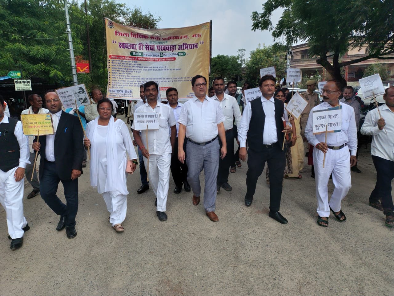 माननीय उच्च न्यायालय,इलाहाबाद द्वारा प्राप्त निर्देशों के अनुक्रम में दिनांकः17.09.2024 से 02.10.2024 तक ’’स्वच्छता ही सेवा पखवाड़ा अभियान’’ के अंर्तगत आज दिनांकः 01.10.2024 को माननीय जनपद न्यायाधीश/अध्यक्ष, जिला विधिक सेवा प्राधिकरण,मऊ ,श्री रामेश्वर के मार्गदर्शन में अपर जनपद न्यायाधीश/ सचिव, जिला विधिक सेवा प्राधिकरण, मऊ श्री बकर शमीम रिजवी के नेतृत्व में पैनल अधिवक्ता गण, लीगल एड डिफेंस काउंसिल, पराविधिक स्वयंसेवकों तथा कर्मचारीगण द्वारा दीवानी न्यायालय परिसर में साफ-सफाई/स्वच्छता हेतु अपना-अपना श्रमदान किया गया। इस दौरान सचिव जिला विधिक सेवा प्राधिकरण द्वारा स्वच्छता जागरूकता हेतु रैली को हरी झंडी दिखाकर रवाना किया गया जिसमें पराविधिक स्वंयसेवको ने बैनर एवं तख्ती के माध्यम से लोगों को स्वच्छता के प्रति जागरूक किया ।