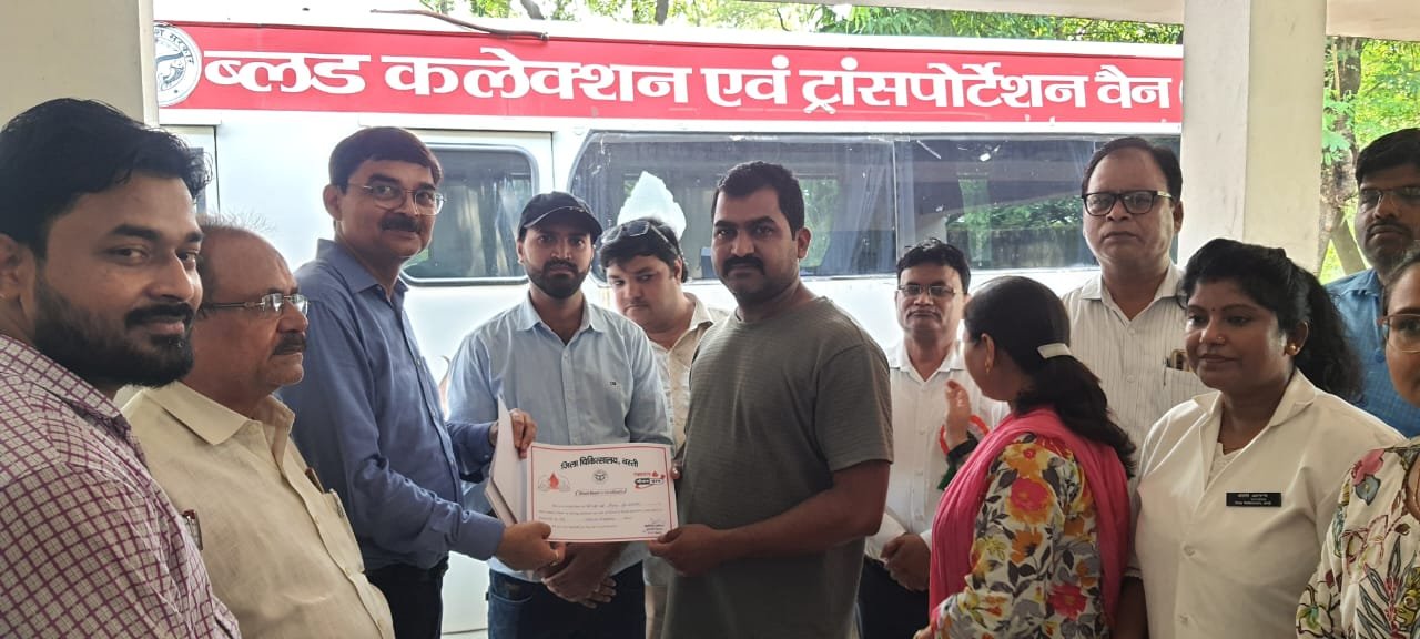 बस्ती: 2 अक्टूबर2024 को राष्ट्रपिता महात्मा गांधी और पूर्व प्रधानमंत्री लाल बहादुर शास्त्री जी के जयंती के अवसर पर हथियागढ स्थित कुष्ठ आश्रम के प्रांगण में कुष्ठ मरीजों को आश्रम के सहयोग से रोटरी क्लब के सहयोग से इनर व्हील क्लब के सहयोग से रेड क्रॉस सोसाइटी के सहयोग से मारवाड़ी महिला विकास मंच का सहयोग वस्त्र,फल,दैनिक उपयोग वाली वस्तु को बांटा गया एवं रोटरी क्लब के सहयोग से रक्तदान शिविर का आयोजन किया गया| जिसमें कौशल त्रिपाठी कार्यक्रम संयोजक ने रक्तदान किया| लगभग 12 यूनिट लोगों ने रक्तदान किया और बापू एवं लाल बहादुर शास्त्री जी को नमन भी किया| जिसमें उपस्थित रोटरी क्लब के अध्यक्ष अमृतेश श्रीवास्तव इनर व्हील क्लब की अध्यक्ष कला अग्रवाल जी रेड क्रॉस सोसाइटी से कुलविंदर सिंह , डॉक्टर एल के पांडे ,डॉक्टर बी के वर्मा, डॉ अनिल श्रीवास्तव मारवाड़ी महिला विकास मंच से नीतू गाड़ियां तनुश्री गाड़ियां आशीष श्रीवास्तव रोटेरियनदेवेंद्र श्रीवास्तव हथियागढ़ग्राम सभा के प्रधान पूर्व प्रधान आश्रम प्रभारी रामदास यादव सैकड़ो लोग उपस्थित रहे|