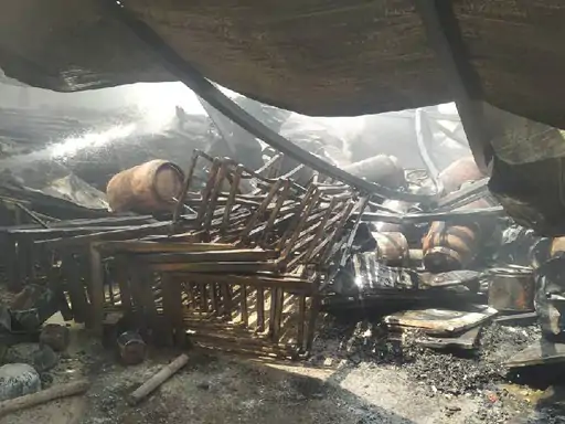 प्रत्यक्षदर्शियों ने बताया कि आग पहले पर्दों और कपड़ों के अन्य सामान में लगी। गोदाम में मौजूद 5 से ज्यादा कर्मचारियों ने इसे बुझाने की कोशिश की। इसी दौरान एक के बाद एक चार गैस सिलेंडर में ब्लास्ट हुए। कर्मचारियों ने भागकर अपनी जान बचाई। गोदाम का टीन शेड करीब 50 फीट दूर जाकर गिरा। उन्होंने गोदाम में घरेलू गैस सिलेंडर से रिफिलिंग किए जाने का आरोप भी लगाया है।