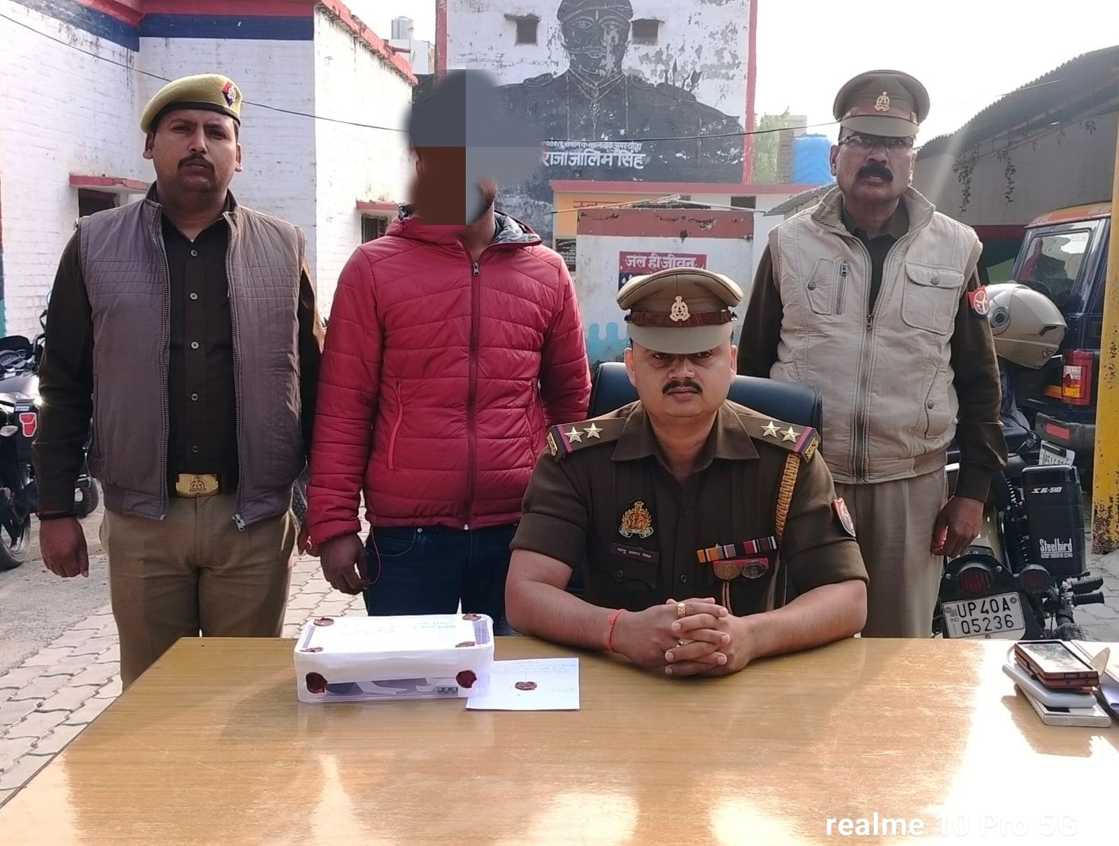 बस्ती- थानाध्यक्ष छावनी मय पुलिस टीम द्वारा अवैध असलहा लिए एक अभियुक्त सूरज मिश्रा पुत्र श्री स्व0 उमाशंकर मिश्रा सा0 मल्लुपुर थाना छावनी बस्ती को चौकड़ी टॉल प्लाजा थाना छावनी से गिरफतार कर अभियोक्त के पास से एक रिवाल्वर चार जिन्दा कारतूस बरामद कर आवश्यक विधिक कार्यवाही करते हुए मा0 न्यायालय रवाना किया गया।